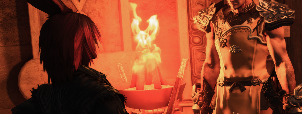 Dans la nuit glacée d'une petite île de l'archipel de Sharlayan, un long phare blanc balaie l'océan avec une régularité de métronome et à ses pieds de douces lueurs luttent bravement contre l'ombre épaisse. A l'abris relatif d'une colonnade, un balcon de marbre court le long d'une salle amplement décorée pour la Fête des Etoiles. Une longue table table couverte d'une nape de file blanc supporte un amoncellement de plats, de bougeoirs, et de décorations rouges, vertes et or. Présidant l'assemblée, un viéra à la crinière blonde porte un bonnet pointu de laine écarlate bordée de fourrure blanche jurant joyeusement avec son élégant habit noir et sa lavallière blanche. Son rire chaud est couvert par les conversations animées de tous ceux partageant sa table et la musique qui s'élève d'un orchestrion. Une noble dame élézen ayant vu passer bien des hivers et coiffée d'une tiare aux reflets mystérieux semble s'offusquer de ce rire si peu contenu. Assise à la droite du maître de maison hilare, elle lève les yeux au ciel tout en pinçant les lèvres pour tenter de retenir un sourire tendrement amusé. A la gauche d'Ulysse siège évidemment Pythéas.