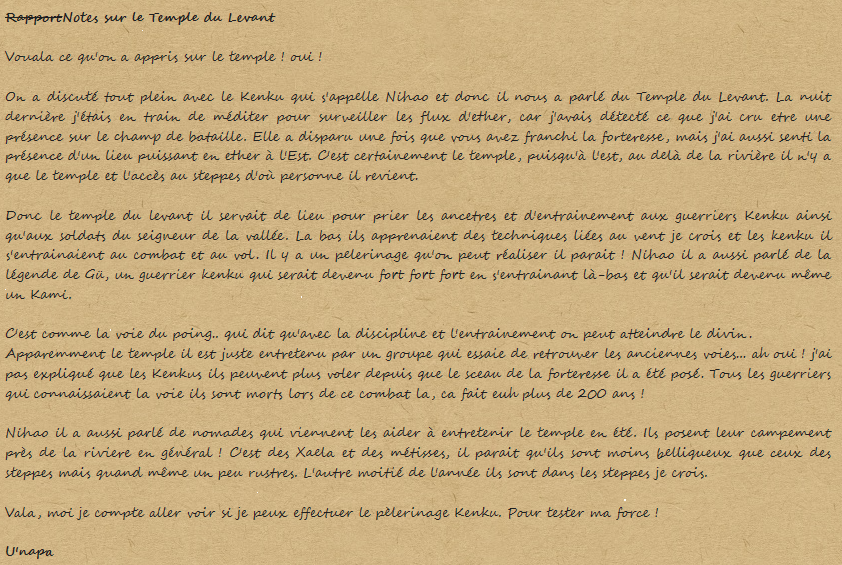 Cette lettre aura était laissé avec les autres rapports de la Vallée par le Hyurois.