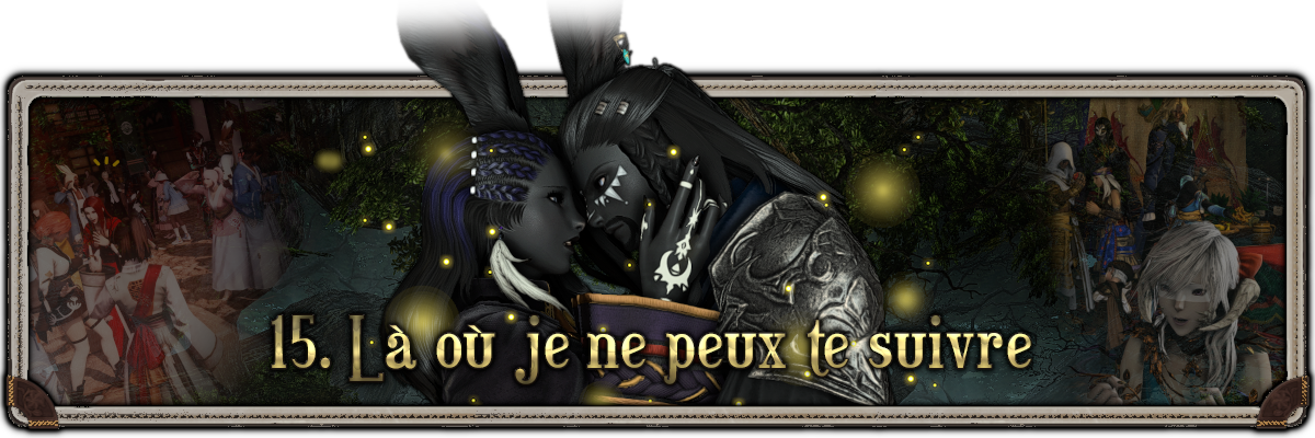 Heureusement qu'ils étaient là, tous. Pour la faire sourire, pour la sortir de ses sombres pensées et lui rappeler que le monde continue de tourner, qu'il n'y a pas de pause. Bientôt ils quitteraient Kugane pour la Mer de Rubis et là-bas, elle prendrait contact avec une nouvelle tribu si la chance était de leur côté. Elle serait prête le moment venu.