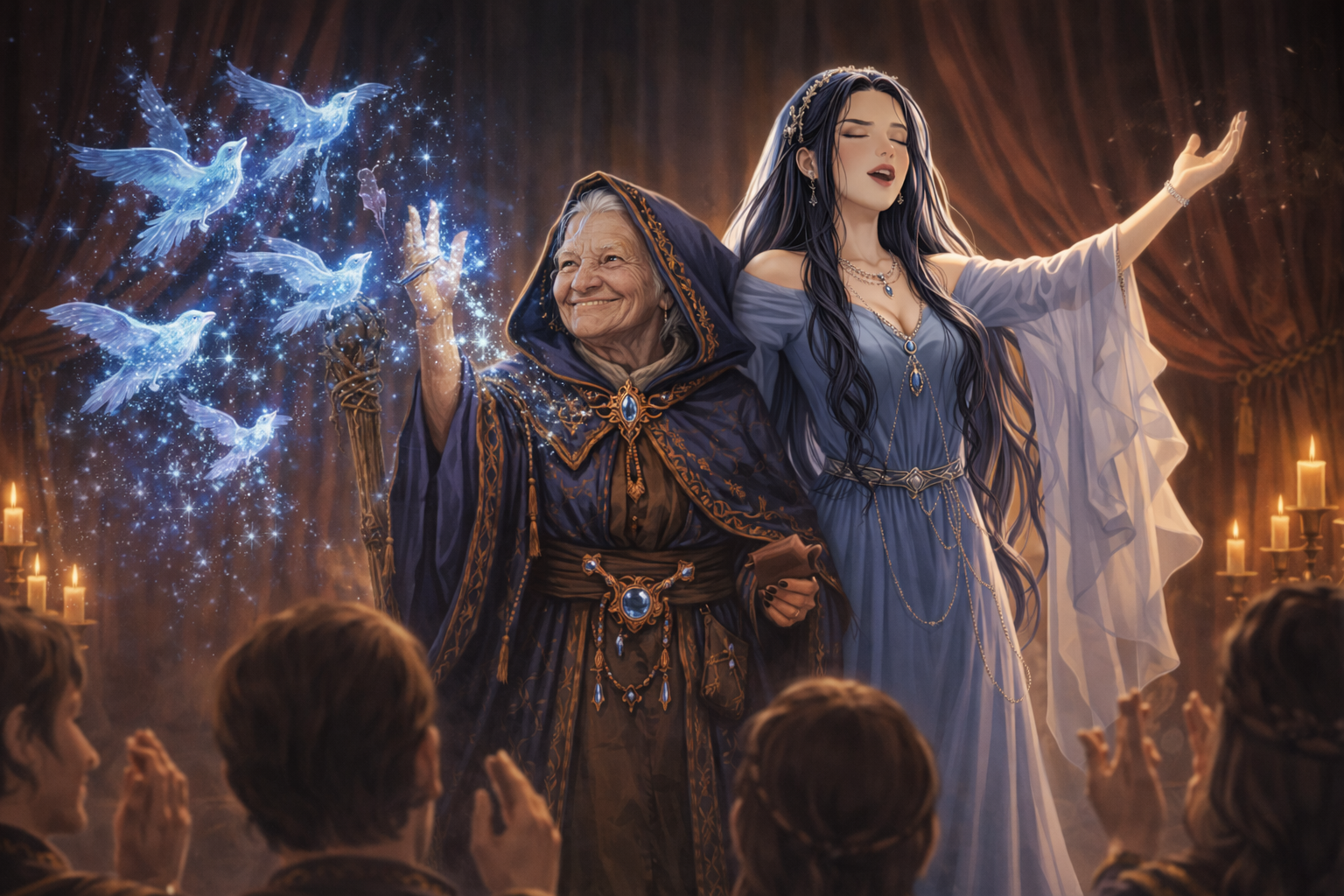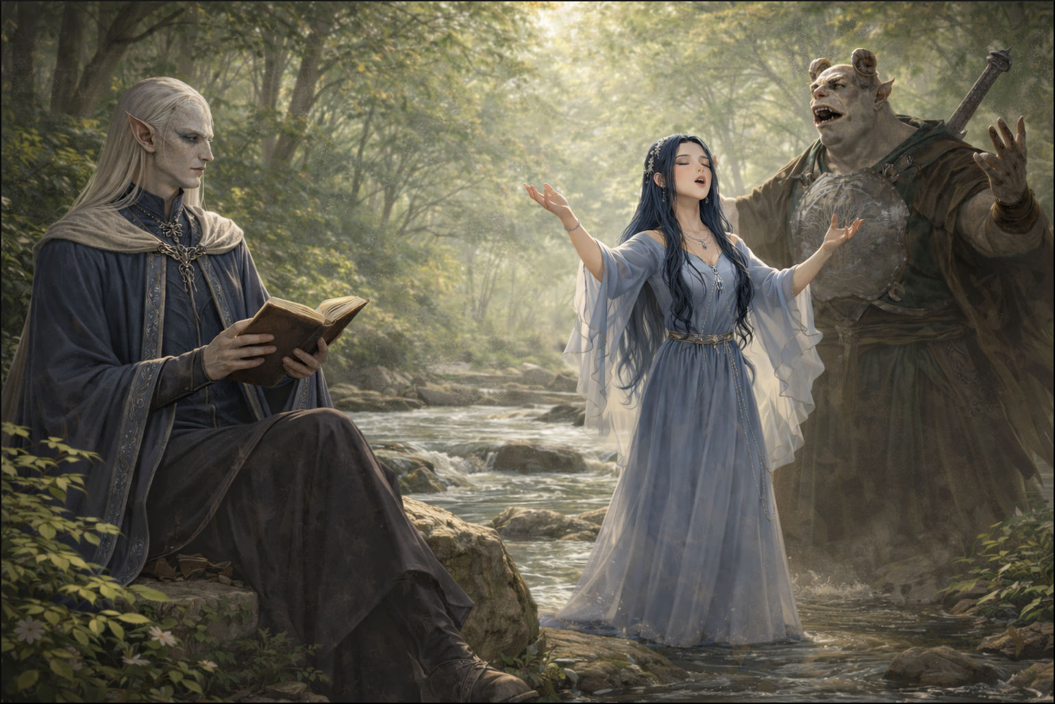 "Sa voix est semblable au chant de la rivière entre les arbres, et tu lui as déjà appris comment plaire à ceux qui croisent son regard. Nous lui apprendrons nos chants, et tu feras ce que tu as décidé. Mais crois-tu vraiment qu'une fois dehors, sa voix sera entendue par ses semblables ?