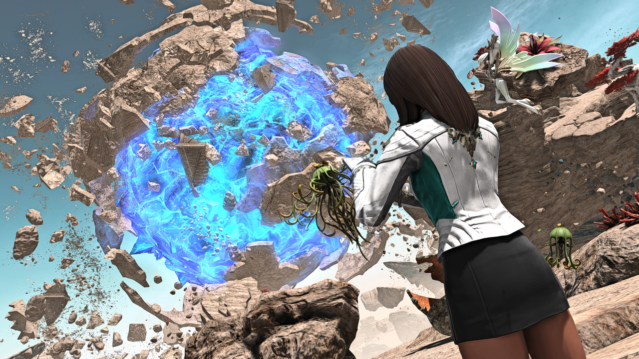 La base a été construite près de ruines d'une ancienne civilisation -incluant un cristal géant- avec un système de gravité locale pour que les gens restent au sol. Je me suis demandé pourquoi les roches locales ne retombaient pas, du coup, et un certain "Thinkingway" s'est empressé de me bombarder d'hypothèses. Comme quoi l'anomalie dans le ciel avait pu contrebalancer assez pour que les cailloux gravitationnels restent en l'air, ou que les cailloux eux-mêmes aient contrebalancé par réactions, ou que leur champs artificiel passe au travers des rocs gravitationnels...