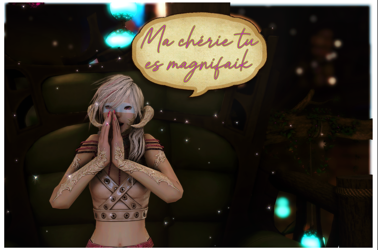 Pour ceux qui l'ignoraient encore (les petits nouveaux là) le réveillon du solstice d'hiver qui a été initié par Meleth en pleine fête des étoiles, c'était partit d'une croyance rp du personnage plus attachée au cycle des saisons qu'aux fêtes eorzéennes et qui avait souhaité combiner les deux alors qu'elle commençait à vraiment aimer sa nouvelle vie et la culture de son nouveau foyer. Mais c'est aussi un vœu lié aux croyances de la joueuse derrière, élevée dans la culture latino-celtique (j'vous jure ça existe, les basques sont bizarres !). Chez moi, le 21 décembre est le premier jour des 10 jours de célébration du solstice d'hiver au cours duquel on mange et on boit naturellement, mais où on fête surtout l'année écoulée, les accomplissements, ce que l'hiver éteint et ce qu'il fera naître au printemps. Il est donc important de passer chaque jour de cette fête à célébrer les bonnes choses, celles qui comptent. Et ce groupe compte pour moi aussi virtuel soit-il, vous êtes réels dans ma vie et vous comptez. Voilà pourquoi je tiens chaque année à vous consacrer un jour, une soirée. Même pour les absents qui ont autre chose à faire (et c'est bien normal !) vous n'avez pas été oubliés. Merci à tous, et bonnes vacances à ceux qui partent fêter Noël dans leurs familles !