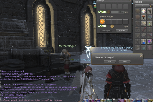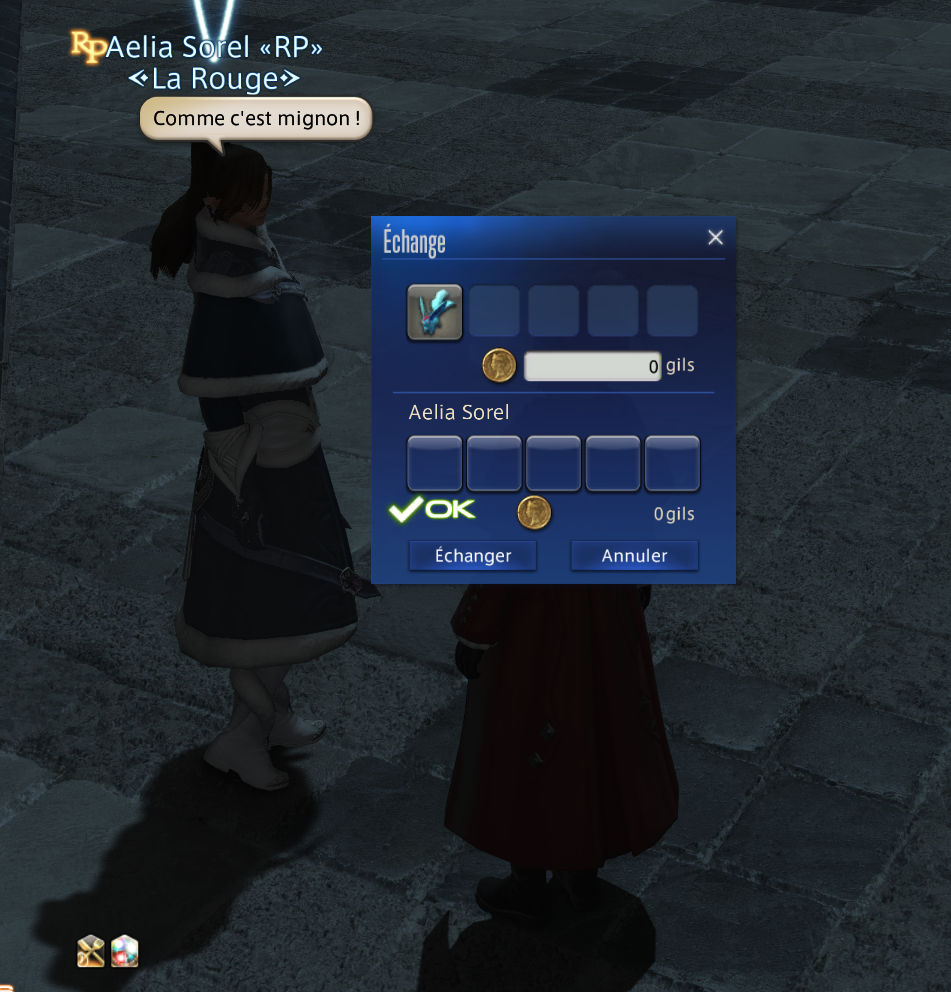 Mission du jour accomplie ! Suite à l'idée d'Ivanhault de profiter du marché d'Ishgard, Wendy a offert une quinzaine de ses anciennes peluches et poupées aux passants. Elle voulait les donner aux pauvres démunis, mais finalement, il n'y avait que des gens riches. Mais ils étaient contents ! Même Alden en a pris une ! (mais chut faut pas le dire). C'était chouette à jouer en tout cas, de raconter une petite anecdote sur chaque peluche qu'elle donnait. Tout est parti !
