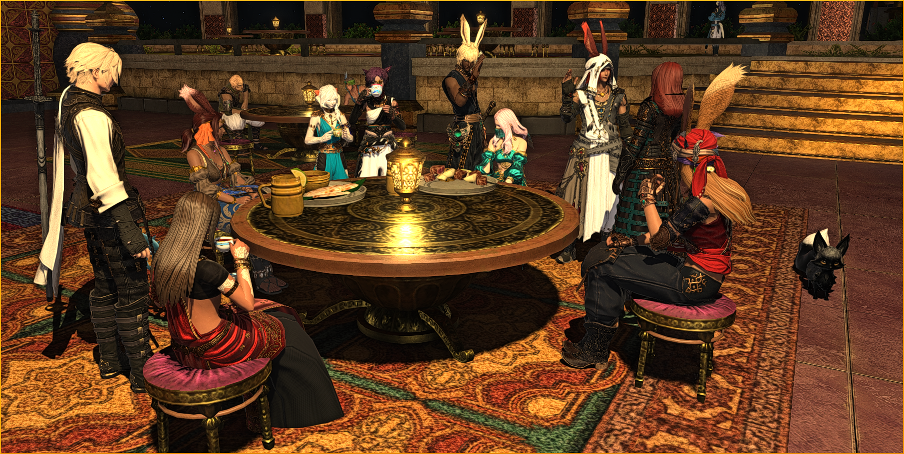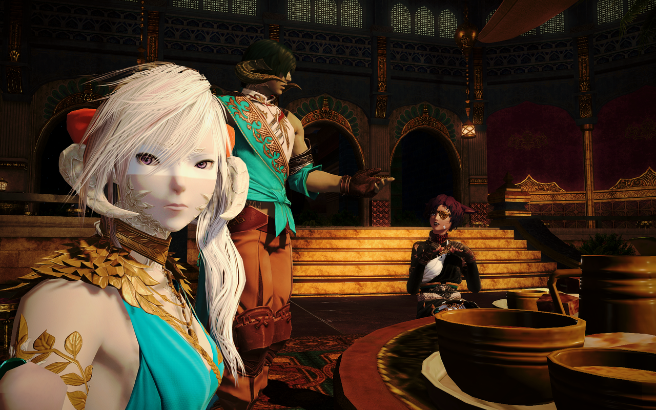 Certains ont pu le voir samedi soir, Yone semble être venu voir le groupe d’expédition arrivé à Thavnair. Entre les discussions, les anecdotes des mésaventures de ses camarades et quelques escapades sur les toits de Radz-at-han – et faire boire à Wendy de l’eau, il avait pu profiter de la soirée le cœur léger.
